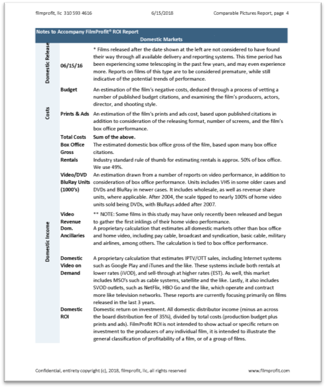 The Original ROI Reports now with Video on Demand estimates (on titles with a post-2010 release). Refined over the course of 20+ years, these estimates are hand-analyzed and compiled by a single analyst. Choose from a single title, or for a more complete picture of your potential for ROI, choose One, Five, Ten or Twenty or more titles.